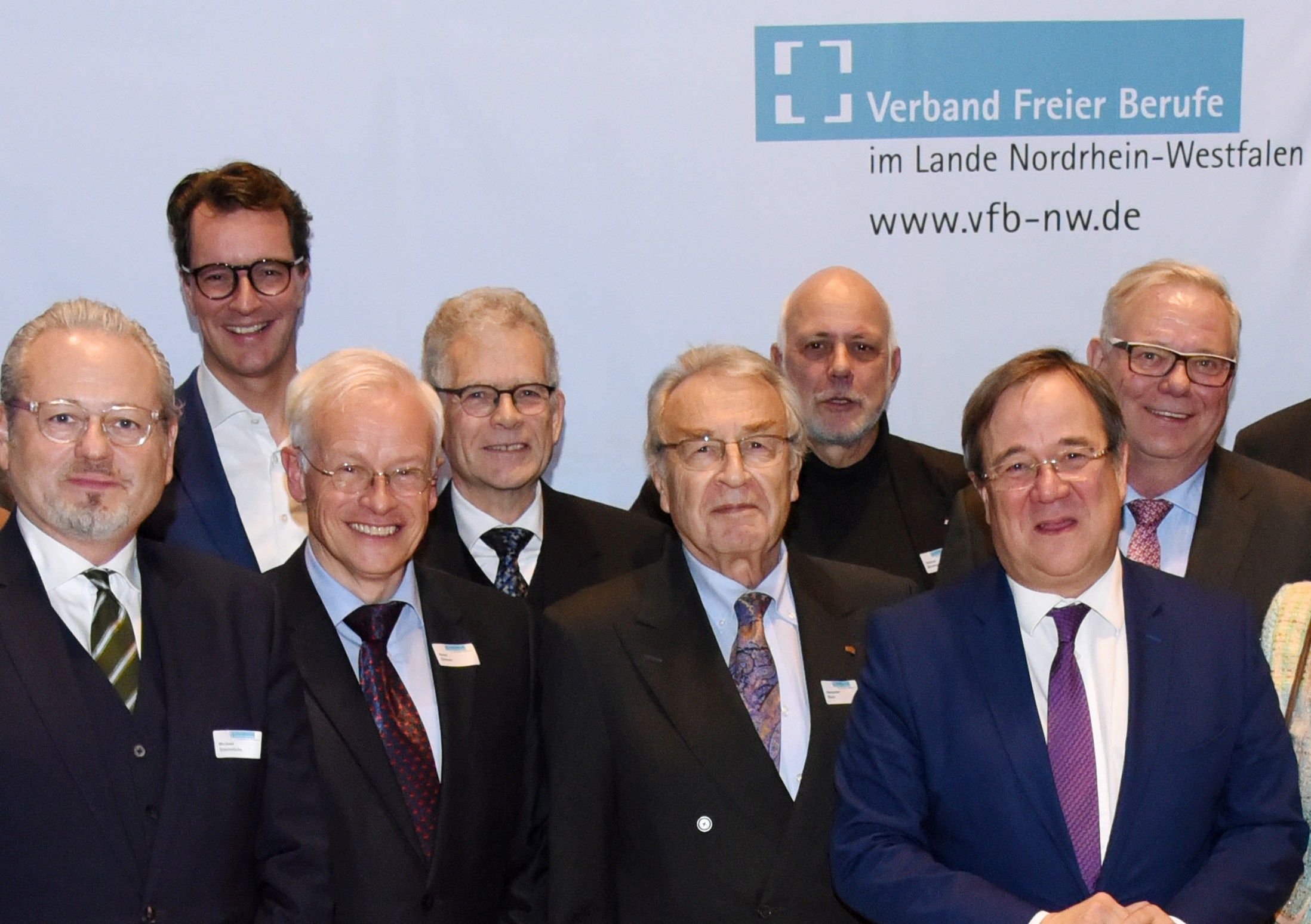 Gruppenfoto mit Ministerpräsident Armin Laschet (2.v.r.): Prof. Dr.-Ing. Reinhard Harte (4.v.l.) wurde im Rahmen der Mitgliederversammlung zum zweiten Vorsitzenden des VFB NW gewählt.<br /><span class="sub_caption">Klick auf das Foto: größere Version</span><br /><span class="sub_caption">Foto Rolf Purpar</span>
