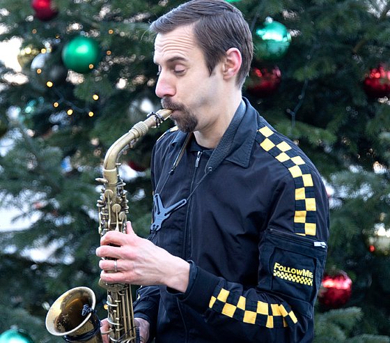 Ein bunter Songmix lockte so manche Zuschauer*innen aus den Gebäuden. Mit ausreichend Abstand lauschten sie Liedern wie „Don’t worry, be happy“, „Follow me“ und „I can see clearly now“. Vorweihnachtliche Stimmung kam mit „Feliz Navidad“ und „Last Christmas“ auf. Ein Heimspiel hatte Saxofonist Heiner Gulich, der Lehrbeauftragter für Jazz-Saxofon im Fach Musikpädagogik ist.