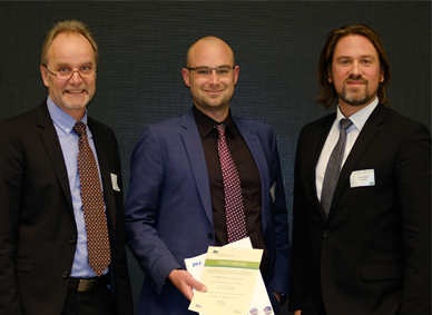 Nahmen die Auszeichnung in Berlin entgegen (v.l.n.r.): Prof. Dr. Karsten Voss, Wissenschaftlicher Leiter des Konzepts, Daniel Lorberg Projektkoordinator, und Jochen Stiebel, Geschäftsführer der Neuen Effizienz.<br /><span class="sub_caption">Klick auf das Foto: Größere Version</span>